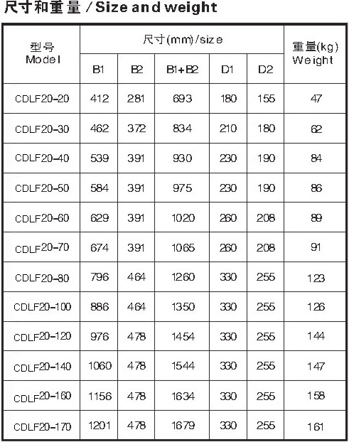 CDLF為安裝標準電機的非自吸立式多級離心泵,電機軸通過泵頭用聯軸器直接與泵軸聯接,拉桿螺栓將耐壓筒、過流部件固定在泵頭和進出水段之間,泵進出水口在泵底同一直線上;本泵可根據需要配置智能保護器,對泵干轉\缺相\過載等進行有效保護。